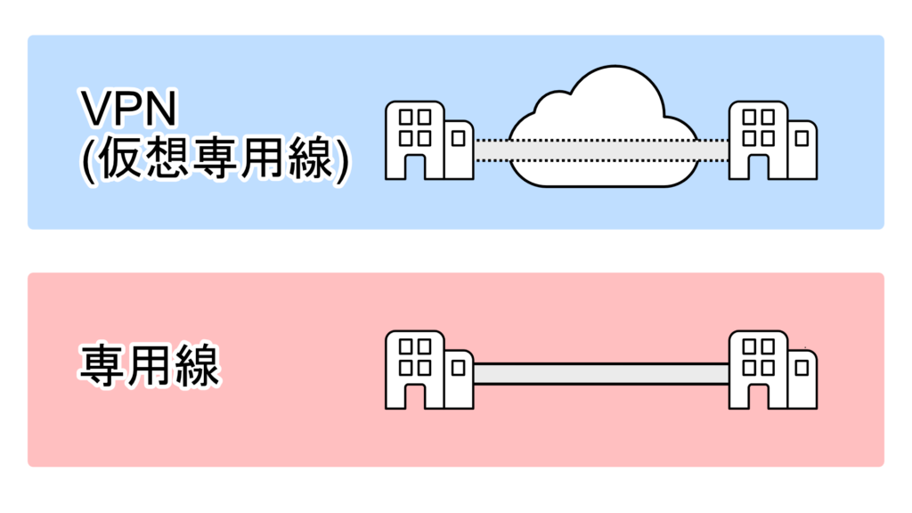 もともとは社外から社内にアクセスしたいときには物理的に専用線を引く必要がありました。しかしVPNの登場により専用線を引かずとも社外から社内に安全にアクセスできるようになったのです。