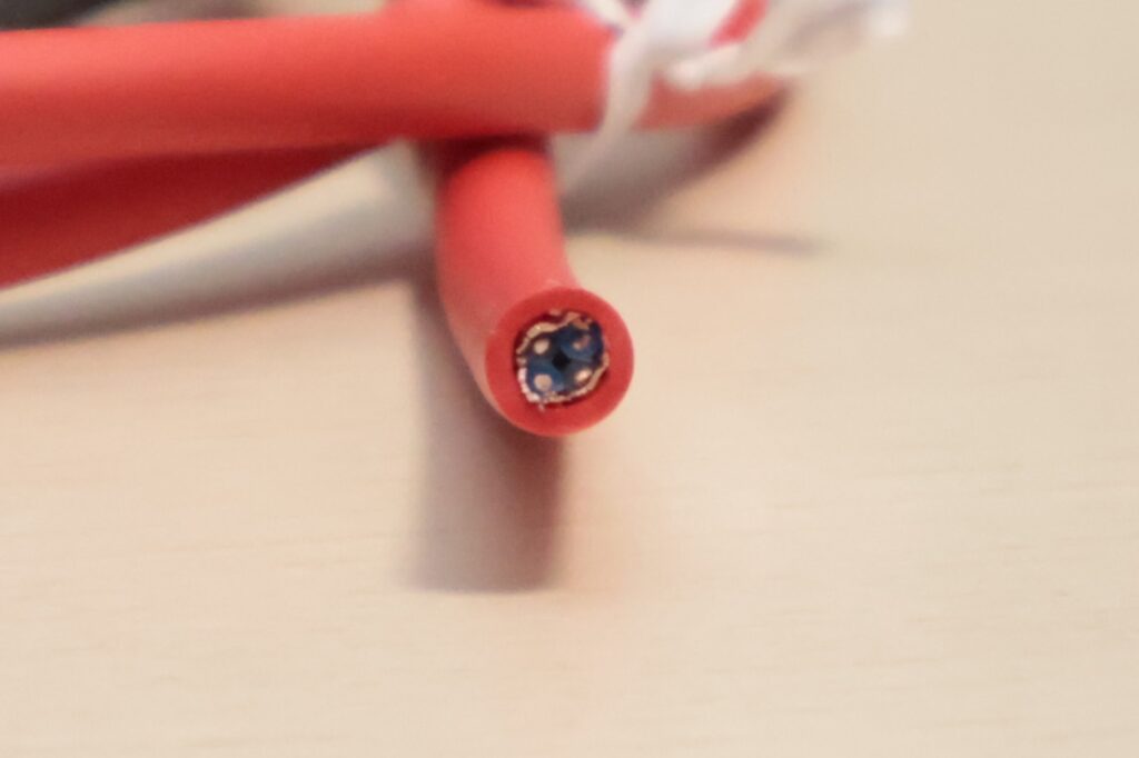 18mmくらい外側の被膜を剥いてうまいこと結線します。