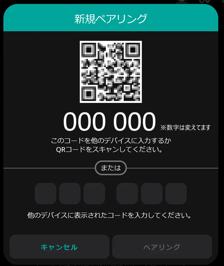 - ペアリング画面が出てくると思うので、どちらかの端末で数字を出し、その数字をもう一方の端末に入力してください。