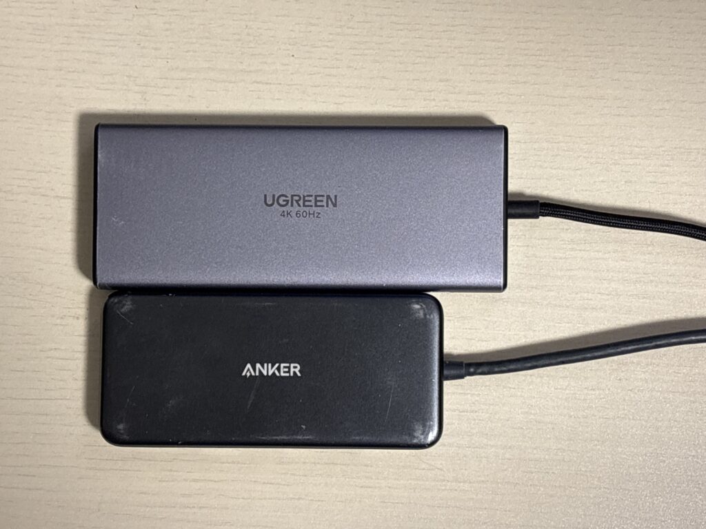 外出用は軽量・自宅用は多ポートと使い分けると、負担を減らしつつ快適に運用できますので用途に応じて使い分けるのも手かもしれません。(筆者もankerを持ち運び、Ugreenを家置きにしてます..)