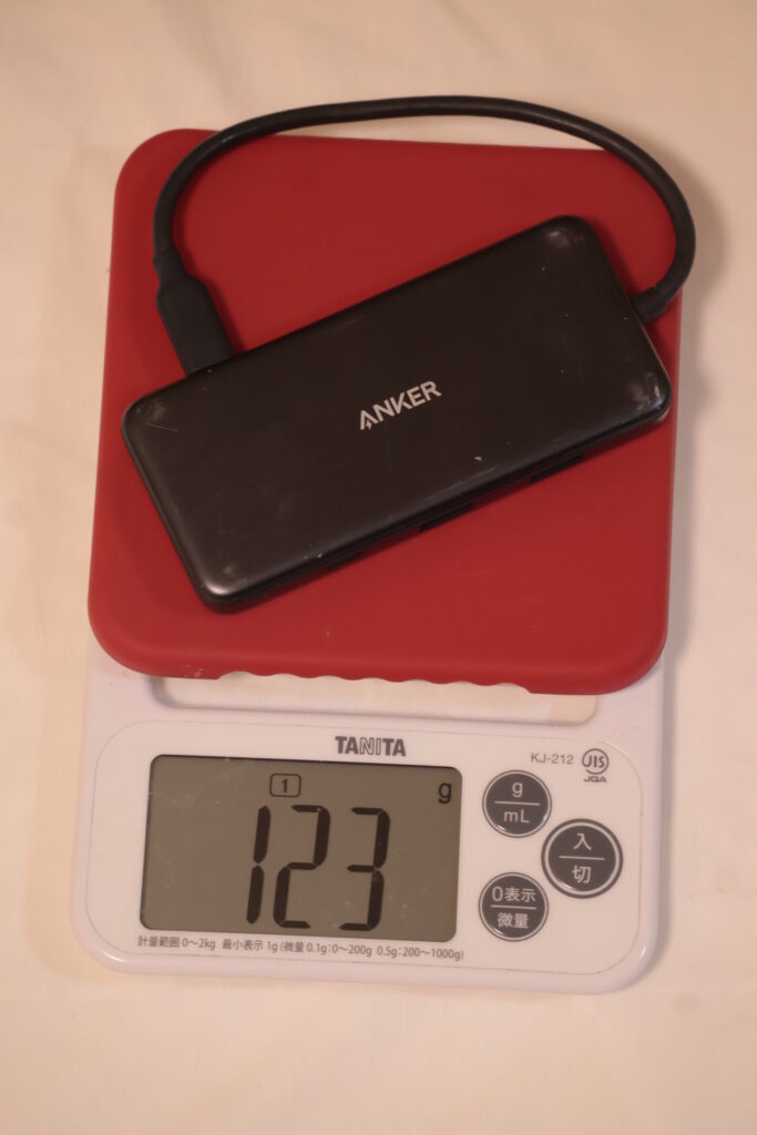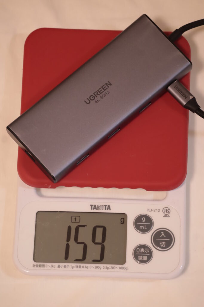 UGREENのHUBは実測159g。ちょうどiPhone1台分ほどで、長距離の持ち歩きでは確かにじわっと効いてきます。
